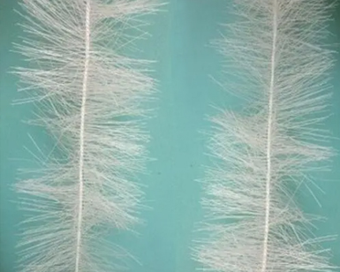 YCDT型立体弹性填料筛选了聚烯烃类的聚酰胺中的几种耐腐、耐温、耐老化的优质品种,混合以亲水、吸附、抗热氧等助剂,采用特殊的拉丝,丝条制毛工艺,将条穿插固着在耐腐、高强度的中心绳上,由于选票和工艺配方精良,刚柔适应,使丝条呈立体均匀排列辐射状态,制成了悬挂式立体弹性填料的单体,填料在有效区域内能立体全方位均匀舒展满布,使气、水、生物膜得到充分混渗接触交换,生物膜不仅能均匀地着床在每一根丝条上,保持良好的活性空隙可变性,而且能在运行过程中获得愈来愈大的比表面积,又能进行良好的新代谢,这一特征与现象是目前其他填料不可比拟的。