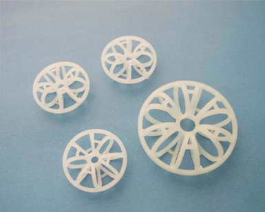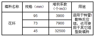 花环填料的主要特点是填料的空隙率大,不易被堵塞,还有通量大、阻力小等优点,由于这种填料的间隙处能有较高的滞液量,可使塔内液体停留时间较长,从而增加了气液的接触时间,提高了优质效率,故此冶金工业部首先研究并引进美国填料公司的塑料花环,制定为冶金工业部专用推广填料。