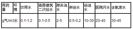 1、各种自来水厂的消毒。2、 高层建筑二次给水、饮用水的消毒。
